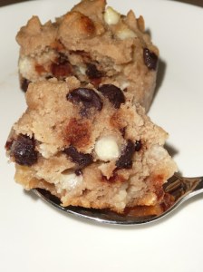 Comme je n’avais plus assez de pépites de chocolat noir (et oui ça part vite!!!) j’ai mis 1/2 tasse de chocolat noir et 1/2 tasse de chocolat blanc.