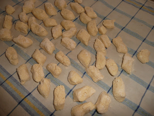 Formez des boudins d’1/2cm de diamètre environ avec la pâte et couper dans le biais de façon à faire les gnocchis.