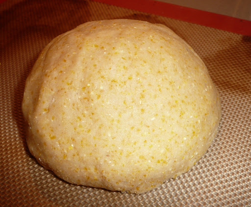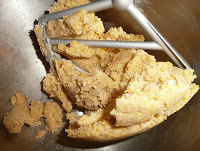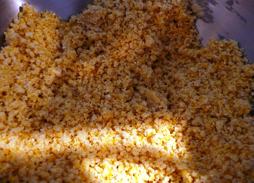 Dans le robot mélanger les farines, le parmesan, la polenta et le beurre jusqu’à obtenir une pâte de texture sablée.