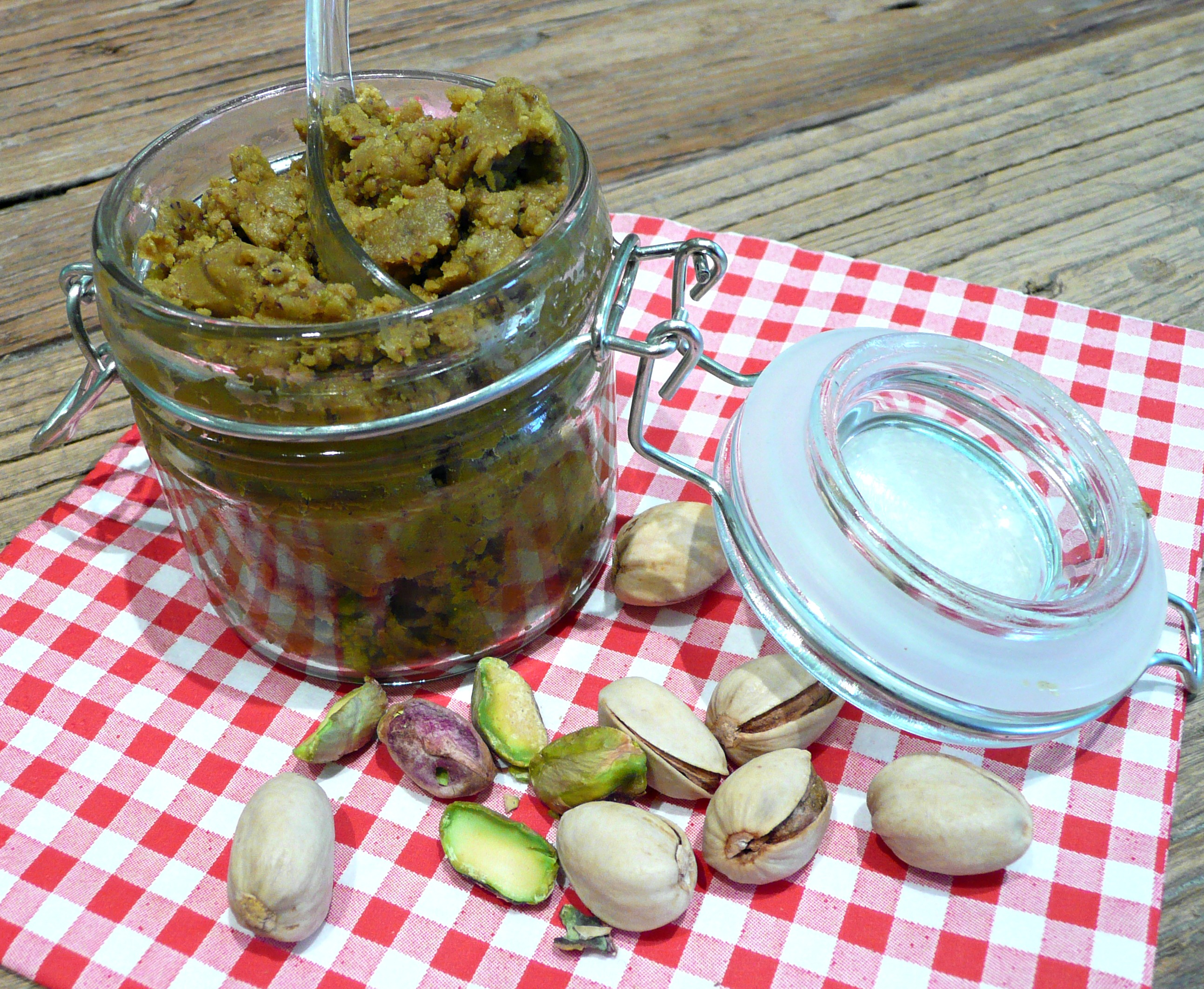 Il y avait très longtemps que je voulais faire de la pâte de pistache, car c’est vraiment fantastique en patisserie, on peut l’utiliser pour faire des biscuits pour parfumer des crèmes, faire des ganaches… Bref ses usages sont vraiment nombreux et variés.