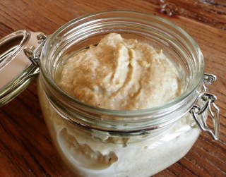 - 150g de farine (voici le mélange sans gluten que j’ai fait: 75g de farine de riz complet, 25g de farine de noix de coco, 25g de farine de pois, 25g de fécule de tapioca, 1 càc de gomme de xanthane)
